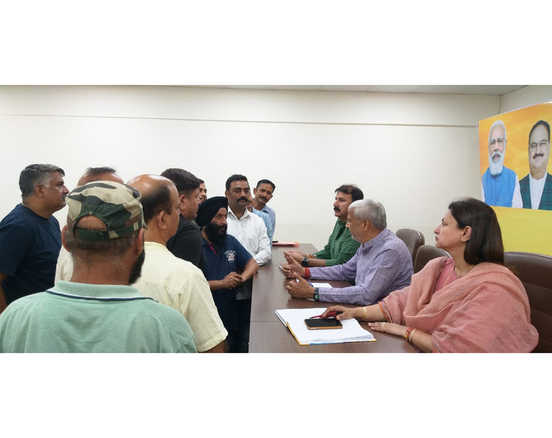 JAMMU, Sept 29: J&K BJP vice-president, and former Minister, Sham Lal Sharma accompanied by BJP secretary and in charge Grievance Committee, Arvind Gupta and BJP secretary, Rekha Mahajan, listened to the grievances of many people belonging to different areas of Jammu & Kashmir at party headquarter, Trikuta Nagar, Jammu.