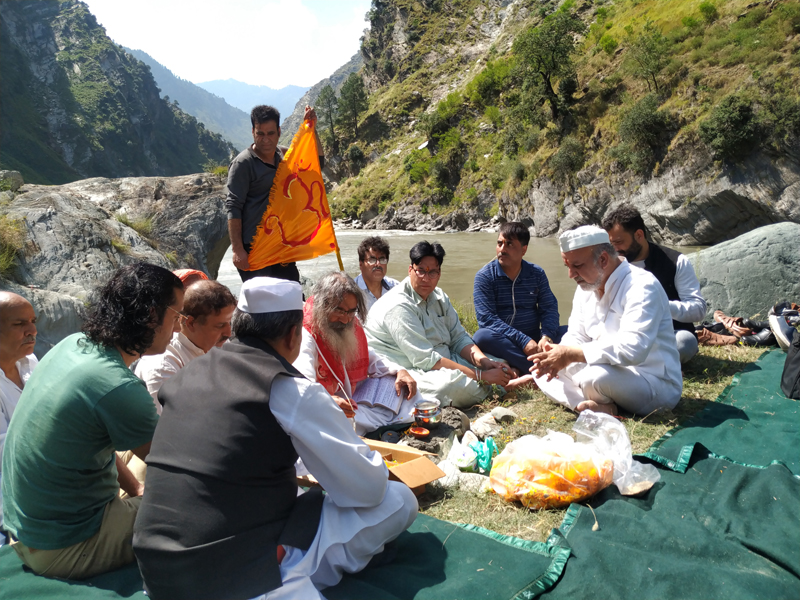 JAMMU, Sept 14: Sharda Puja was performed on the banks of Kishenganga river right on LoC at Teetwal, Karnah in Kupwara district today on th occasion of Sharda Ashtami today which is also known as Ganga Ashtami. A group of 20 pilgrims including a few locals took part in the annual Puja that used to be held at Sharda Peeth ( now in PoK) prior to partition this day. Every year the Committee organizes a programme on this day that marks the ancient annual yatra day to famous Sharda Peeth. Swami Nand Lal Koul, a Kashmiri saint was the last to manage the Peeth, that holds a high place for Hindu faith.