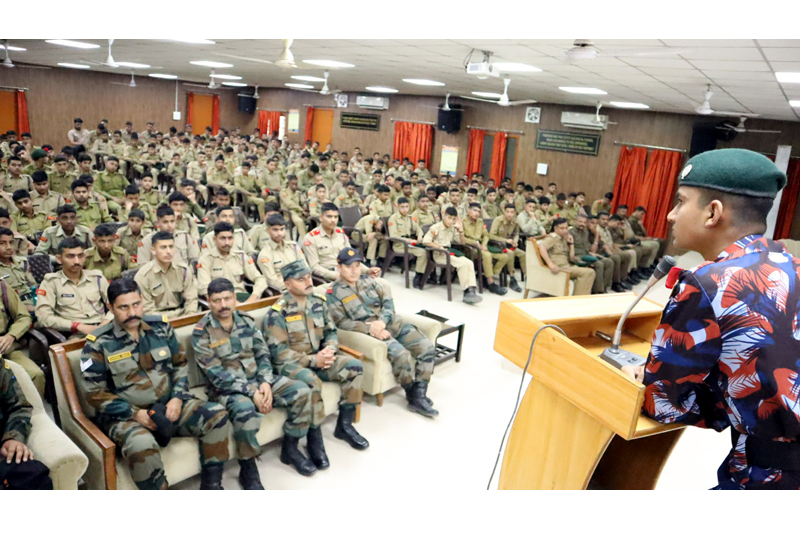 JAMMU, Apr 15: An inspiring speech by Honorary Captain Mohd Sadiq (Retd), a 7 JAK RIF Shaurya Chakra Awardee, to NCC Cadets created a fervent atmosphere at the NCC Training Academy Nagrota here today. There were around 500 NCC cadets who attended the lecture.