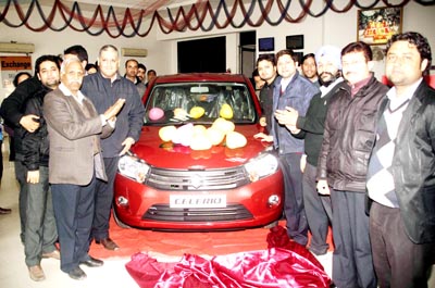 The Celerio was unveiled by Colonel RK Sharma, Sidharth Dhar, Amit Mengi and other staff members of Shaurya Motors in presence of Kirtan Singh, Bhagat Ved Parkash, Rajkumar Sharma, Paramjeet Singh, Naveen Nischal, Darshan Anand, Pammy Baba, Charanjeet Singh, Camres David, Hussain Baksh, Ram Rakha Bhagat, S. Ranjeet Singh and Mohan Singh.