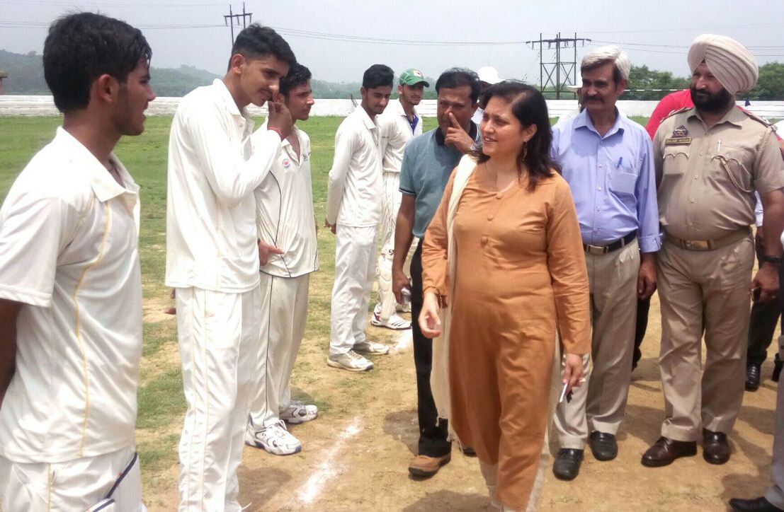 Deputy Commissioner Samba, Sheetal Nanda interacting with players while inaugurating Super Seven Cricket Tournament in Samba.