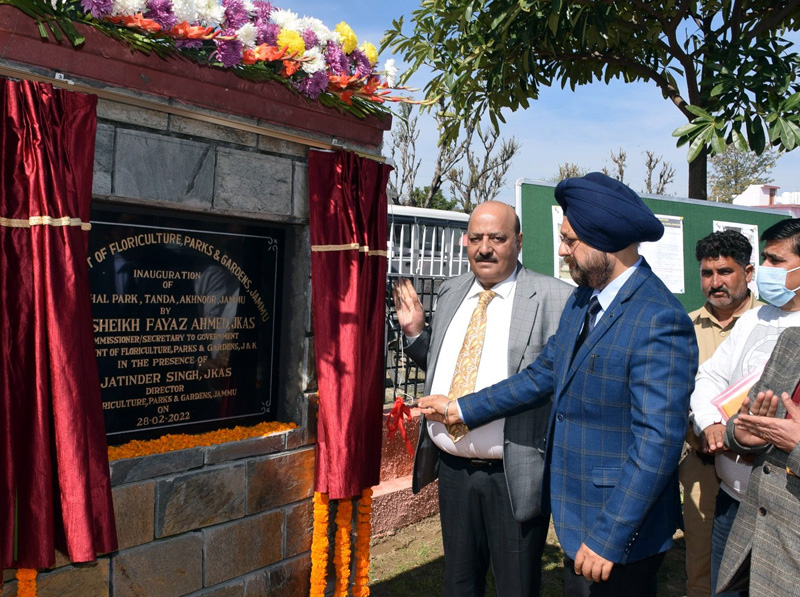 JAMMU, Feb 28: Commissioner Secretary, Floriculture, Gardens and Parks, Sheikh Fayaz Ahmad along with Director Parks & Gardens Jammu, Jatinder Singh today inaugurated a Public Park at Sohal Tanda, Akhnoor.