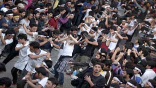 Shia mourners during the Ashoora procession taken out in Jammu on Friday.