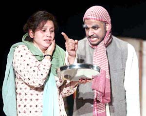 JAMMU Mar 10: Shiv Mehta’s Dogri adaptation of Vijay Tendulkar’s Sakharam Binder, the acclaimed modern classic play, was staged by Natya Karmi, at auditorium of Government College for Women, Gandhi Nagar, here today.
