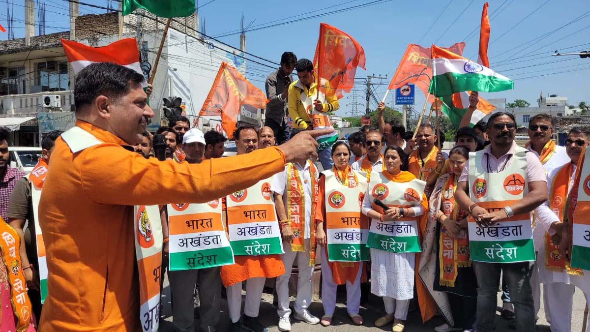 Shiv Sena activists during a rally at Jammu on Sunday. By Daily Excelsior - April 24, 2022 Share FacebookTwitterWhatsAppPinterestLinkedinCopy URLTelegramEmailTumblrReddItPrintKoo Shiv Sena activists during a rally at Jammu on Sunday. Shiv Sena activists during a rally at Jammu on Sunday. Follow our WhatsApp channel