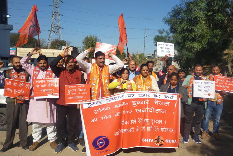 JAMMU, Dec 12: Shiv Sena (Uddhav Balasaheb Thackeray) J&K Unit here today staged a protest demonstration demanding a full-fledged dedicated Duggar Channel.