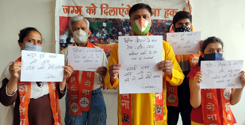 JAMMU, June 1: Shiv Sena (Bala Saheb Thackeray J&K) staged protest against fuel prices hike and skyrocketing inflation and demanded immediate relief in the excise duty levied on the petrol and diesel by the Government which leads to prices hikes of the petroleum products.