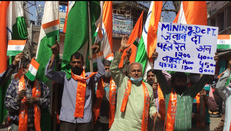 The protest was led by Shiv Sena president, Ashok Gupta and the protesters raised slogans against the Mining Department.