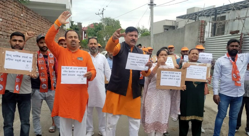 Addressing the protesters, Manish Sahni, J&K president of Shiv Sena demanded free registration for the pilgrimage of Amarnath on the lines of Mata Vaishnodevi pilgrims.