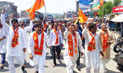 On the directions of the State chief of party Dimpy Kohli and Manish Sahni ( general secretary), the Shiv Sena activists led by Samba district president Ramesh Gupta started protest rally and demonstration against the State authorities seeking withdrawal of Toll Tax at Lakhanpur and Lower Munda. They were carrying Sena flags and placards in hands.