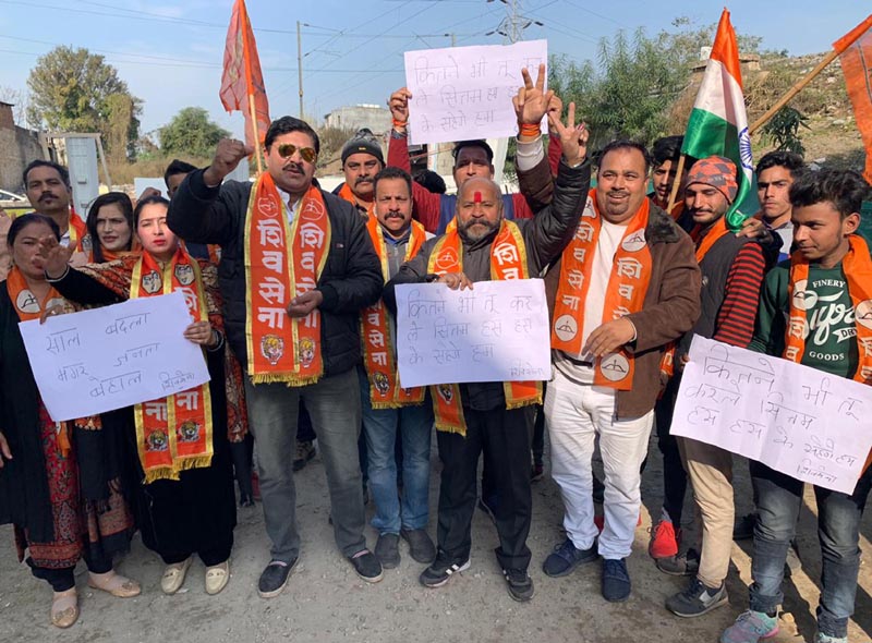 JAMMU, Jan 2: Shiv Sainiks today held a unique protest under the leadership of president J&K unit Manish Sahni , against Modi Government on giving triple gifts to the people on the occasion of New Year. Manish Sahni said that due to the apathetic attitude of the Modi Government on the general issues of inflation, he has decided that now Sena will not beg for the anti-public decisions of the Modi Government but instead will appeal to the public to be patient and reply hard in 2024 elections.