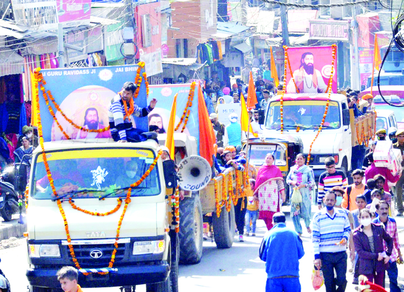 Shobha Yatra of Guru Ravi Dass Ji Maharaj being taken out in Jammu on Thursday. —Excelsior/ Rakesh