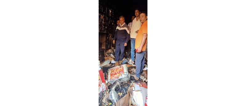 The shops belonging to Sonu Sharma (Krishna Electronics), was totally gutted before the Fire tenders arrived there. Owner of the shop also arrived there after some time. He suspected some foul play behind the incident and demanded proper investigation. The locals of the area also joined him.