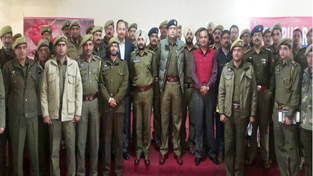 SHOs/IC PPs/IOs of District Jammu alongwith senior police officers posing for a group photograph during a seminar at DPL Jammu on Thursday.