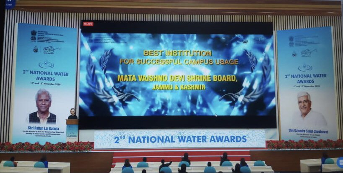 The Award ceremony was organised through virtual mode on November 11-12, 2020 from New Delhi. M. Venkaiah Naidu, Vice President of India was the Chief Guest at the inaugural ceremony of the Award distribution ceremony, while the Awards were given by Gajendra Singh Shekhawat, Union Minister of Jal Shakti and Rattan Lal Kataria, Union Minister of State for Ministry of Jal Shakti. Ramesh Kumar, Chief Executive Officer, Shri Mata Vaishno Devi Shrine Board, who received the award through online mode, thanked the Union Ministry of Jal Shakti for recognising the work done by the Shrine Board for water conservation and proper water management, adding that this award will encourage more and more to work for water management.