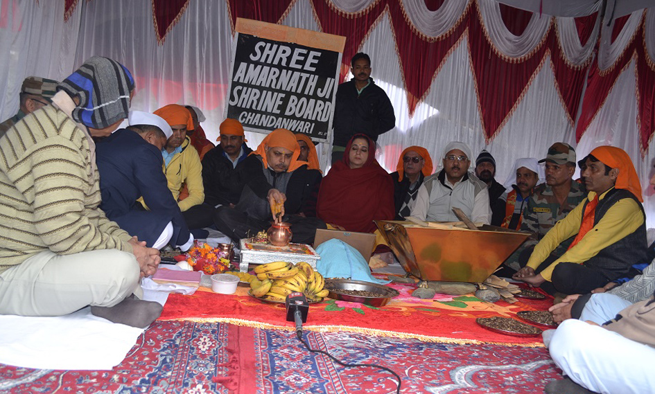 SRINAGAR : Shri P.K. Tripathi, Chief Executive Officer, Shri Amarnathji Shrine Board, performed Pratham Pooja today on the auspicious occasion of Jyesht Purnima at Chandanwari on the traditional Pahalgam-Holy Cave track, amidst chanting of Vedic Mantras to invoke the blessings of Shri Amarnathji, for the smooth conduct of ensuing Yatra to the Holy Cave Shrine. Shri Amarnathji Shrine Board has been organising Pratham Pooja on the auspicious occasion of Jyesht Purnima every year to seek the blessings of Lord Shiva for the peaceful conduct of the Annual Yatra.