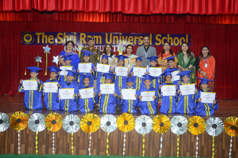 JAMMU, Mar 15: The Shri Ram Universal School held a vibrant Graduation Ceremony for its pre-school students. The event was attended by distinguished guests, including chief guest Additional SP Samba, Garu Ram Bhardwaj and special guest Dr. Anita Sharma, Principal of Divine Light Convent School. The school’s Chairman, Sanjeev Mahajan and Director, Rajni Gupta, were also present.
