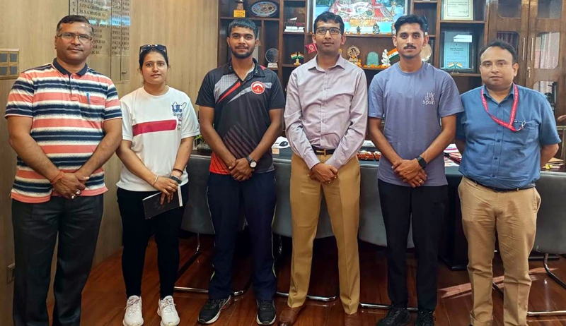 The medal winners Hrithik Sharma, Amit and Shavej today met Anshul Garg, Chief Executive Officer, Shri Mata Vaishno Devi Shrine Board (SMVDSB) Katra in his office.
