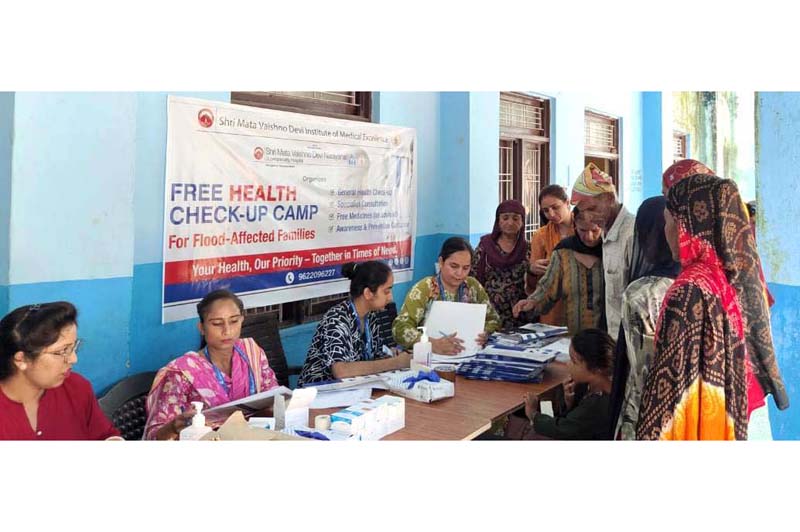 KATRA, Sept 10: In a humanitarian response to the recent floods and landslides that severely impacted various parts of Reasi district, the Shri Mata Vaishno Devi Narayana Superspeciality Hospital, under the aegis of the Shri Mata Vaishno Devi Shrine Board, in collaboration with the Directorate of Health Services, JK-UT, commenced a three-day free health camp to provide urgent medical assistance to affected families.