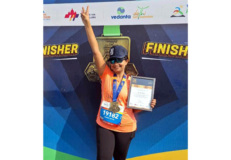 JAMMU, Dec 15: Shweta Mittal, a renowned runner, cyclist and fitness enthusiast from Jammu, made history by becoming the first woman from Jammu & Kashmir to win the prestigious Procam Slam Marathon title in Kolkata.