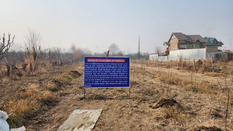 In a similar action, SIA sleuths attached five kanals of land belonging to accused Abdul Rashid Mir at Amarghar in Sopore area of the Baramulla district.