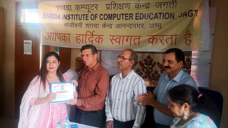 JAMMU, Aug 16: The Sharda Institute of Computer Education (SICE), Jagti Branch of Sanjeevani Sharda Kendra, marked its foundation day with vibrant celebrations. The event began with the lighting of the lamp and a Sharda Vandana. Dr. Arvind Karwani, Relief and Rehabilitation Commissioner, was the chief guest, and Tota Ram, a prominent social activist, presided over the function.