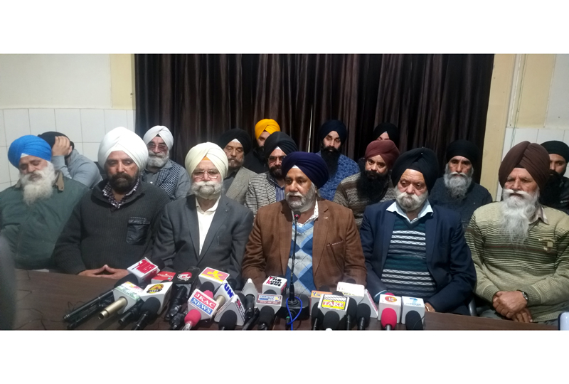 Sikh members of civil society addressing a press conference at Jammu on Saturday.