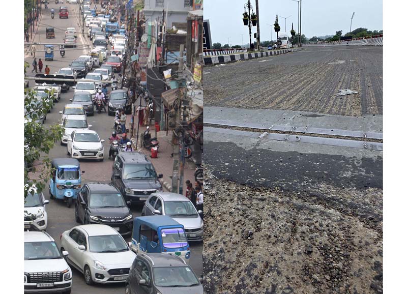 Several days ago, the surface of the entire flyover— from the Chief Education Officer’s office to the Tawi Bridge was scarified to prepare it for fresh blacktopping. Initially, commuters expected that the Roads and Buildings (R&B) Department would take up the second tube of the flyover only after completing work on the first. However, to their surprise, the top layer of the second tube was also scraped simultaneously.