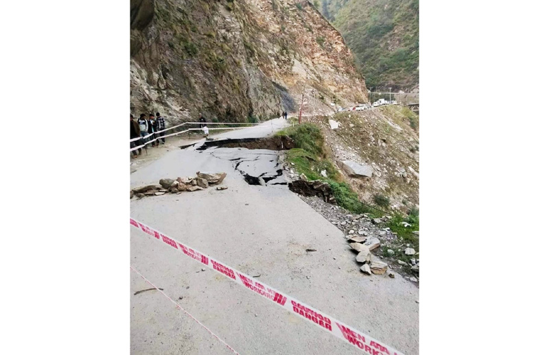 RAMBAN, Apr 7: The Nachlana Khari link road has been blocked due to sinking of a portion of the road near Nachlana since Thursday.