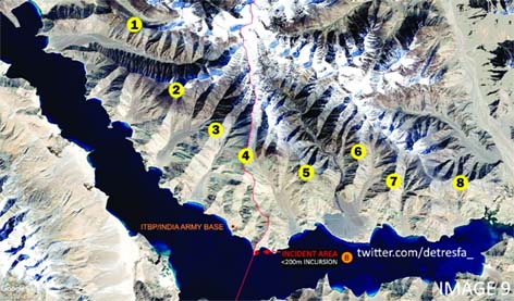 Out of the 34400 Km border we share with China,857 sq km long border is in ladakh. Only 368 km is the international border, and the rest of the 489 sq km is the LAC. The two traditional disputed points included Trig heights and Demchok and the sides have differing perceptions. China stakes its Claims on 176sq km of Lungpa, Depsang pla 97 Sqkm, spring 38Sqkm, Changlung 13 Sqkm, Kung kala-Phobrang 5sqkm, Sarjap 129 Sqkm, Spanguur 24sqkm, Dhumtsele 25sq km. But lately, China has raised two fresh dispute points at Pangong Tso 83 sq km and at Chumur where it claims 80sqkm. The old dispute sites are at the end point of pangong Tso and at Chushul were the 1962 battle-site.Further south in Demchok, China claims some 150sq km. In Chumur where China claims 80 sq km land, it probably wants a straight border from PT- 4925 to PT- 5318 to bring Tible mane (Stupa) area under its control. For India, holding of Chumur is critical for the safety of the Malnali-Leh route. The Sirijap Range on the northern bank of the lake remain most contested, from which 8 cliffs sprout out and are referred to as the “finger series” 1 to 8. India’s LAC claim line is at Finger-8 but the actual position is only up to Finger-4. China claims the Area upto 2nd Finger and has now come up to finger 4 and consolidating its incursion with heavy Artillery, Trenches and numerous troops.