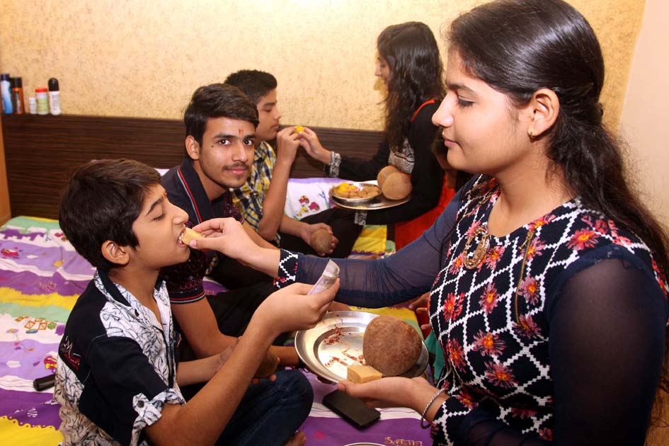 Homehome slider leftSisters offering sweets after putting tilak to thier brother on the occasion...