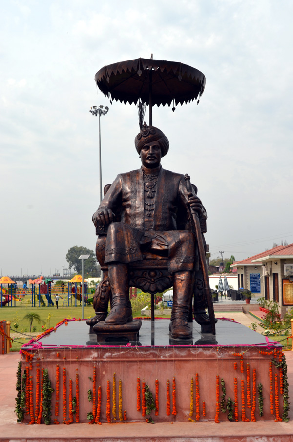 A colossal seated figure of last Maharaja of Jammu and Kashmir State sculpted by Ravinder Jamwal is today complimenting city skyline in a memorial park constructed on the bank of river Tawi. Cast in alloy, primarily Bronze and installed in Maharaja Hari Singh Memorial Park, the statue was recently unveiled by Chief Minister Mehbooba Mufti in presence of Deputy Chief Minister Dr Nirmal Singh and legislatures besides art lovers and dedicated to public as a tribute to the last Maharaja.