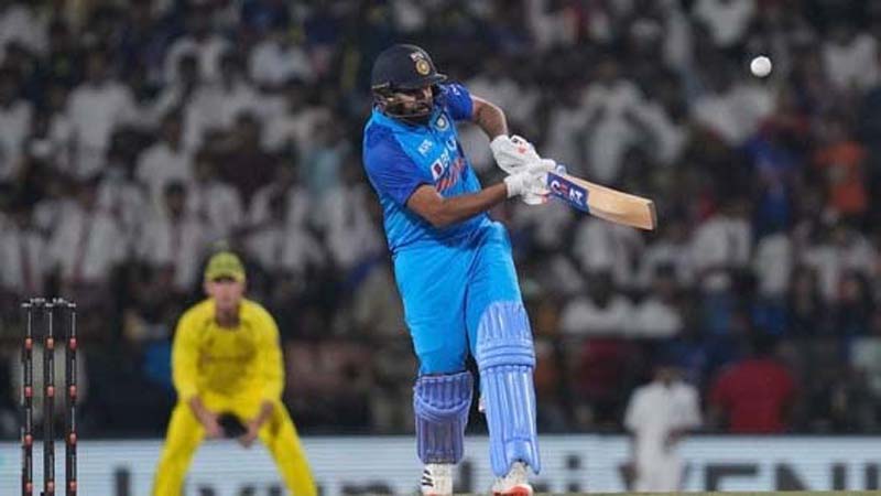 Chasing the target, Rohit made his intention clear as he went on a six-hitting spree, unleashing three monstrous hits off Josh Hazlewood in the opening over to give India’s chase a flying start.