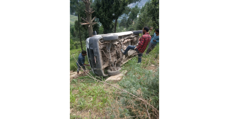 As per police sources, an Eco car without registration number rolled down into gorge in village Kakoo of Block Changa, resulting into injuries to 6 persons.