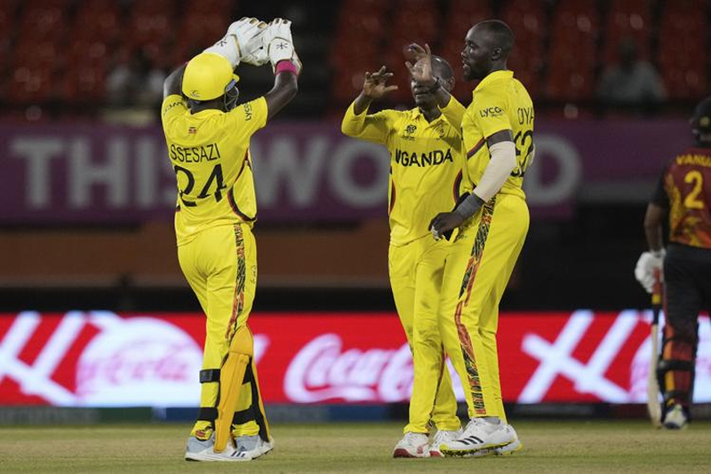 PROVIDENCE (GUYANA), Jun 6: Brian Masaba’s Uganda lineup scraped to a three-wicket victory in a low-scoring thriller against Papua New Guinea on Wednesday for their first win at a Twenty20 World Cup.