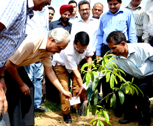 Prof PK Sharma, Vice Chancellor, SKUAST-J along with Shantmanu, Divisional Commissioner Jammu planted Camphor tree and Rudraksh saplings.