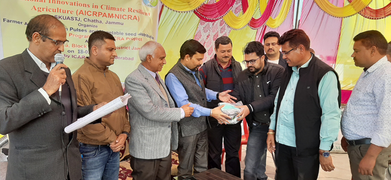 Dr Jag Paul Sharma, Associate Director Research, stressed upon the farmers to adopt the new climate resilient technologies developed by SKUAST-J, Chatha, Jammu. He motivated them to take benefits from the forecast services under NICRA Project which will ultimately enhance the income of poor and marginal farmers of the area.