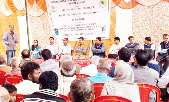 KATHUA, Mar 21: “Management of Scary Effect of Dry Spell”, an awareness programme under NICRA-AICRPAM Project by Agrometeorology Section of SKUAST- Jammu, was organized at village Sherpur in Hiranagar of district Kathua, here today.