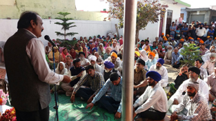 Surjit Singh Slathia addressing a public meeting at Bandral village.
