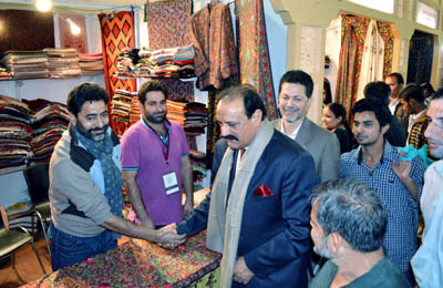 Later, the Minister accompanied with the Commissioner Secretary Industries and Commerce, Shant Manu and Director Handicrafts, J&K, Muzzafar Hussain visited various stalls set up at the JK Pavilion. He also interacted with the artisans who are performing live demonstration of different crafts specially set up for familiarizing the visitors about the manufacturing process.