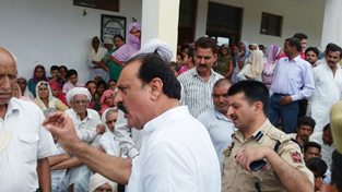 VIJAYPUR, July 13: Former Minister and senior National Conference leader Surjeet Singh Slathia today visited the rain and flood affected areas of Ramgarh in Vijaypur Assembly Constituency and took stock of damages caused and problems being faced by the people who have shifted to make-shift camps in the close vicinity.