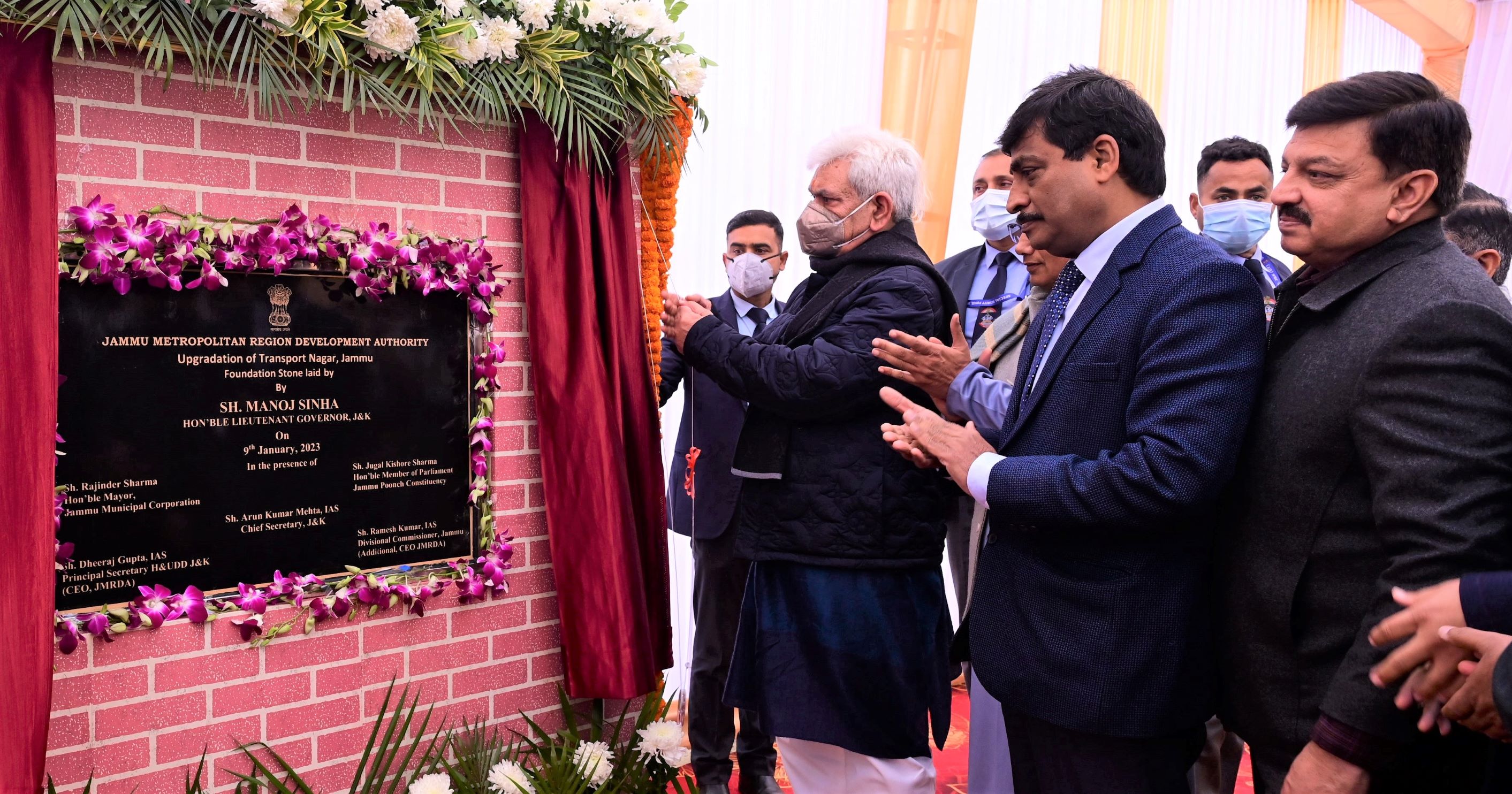 Jammu, Jan 9: Lieutenant Governor Manoj Sinha today laid the foundation stone for upgradation of Transport Nagar in Jammu.