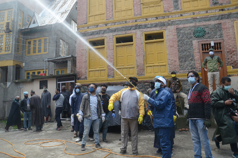 SMC workers spray disinfectant in Srinagar. — Excelsior/Shakeel By Daily Excelsior - April 8, 2020 Share FacebookTwitterWhatsAppPinterestLinkedinCopy URLTelegramEmailTumblrReddItPrintKoo SMC workers spray disinfectant in Srinagar. — Excelsior/Shakeel SMC workers spray disinfectant in Srinagar. — Excelsior/Shakeel Follow our WhatsApp channel