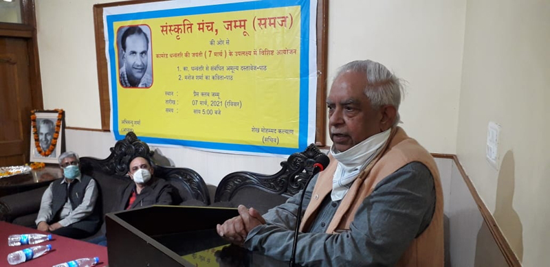 This was the assertion of renowned Hindi litterateur, painter and the former Secretary J&K Academy of Art, Culture and Languages (JKAACL) Ramesh Mehta. He was delivering his presidential address at an impressive function organised by Jammu Sanskriti Manch Jammu (SMJ) to celebrate 119th birth anniversary of Comrade Dhanwantri here on Sunday.