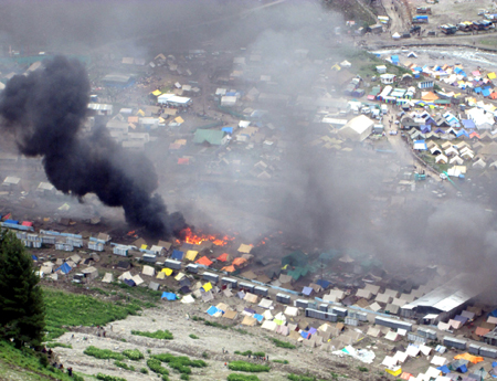 Smoke billowing out of langars and tents set on fire by miscreants at Baltal base camp on Friday. By Daily Excelsior - July 19, 2014 Share FacebookTwitterWhatsAppPinterestLinkedinCopy URLTelegramEmailTumblrReddItPrintKoo Smoke billowing out of langars and tents set on fire by miscreants at Baltal base camp on Friday. Smoke billowing out of langars and tents set on fire by miscreants at Baltal base camp on Friday. Follow our WhatsApp channel