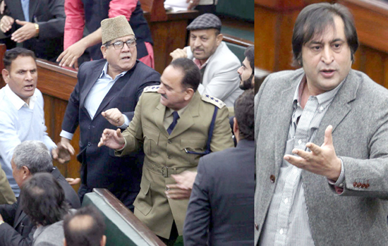 Social Welfare Minister Sajjad Lone and NC leader Mohammad Akbar Lone trade charges in the Assembly on Tuesday. -Excelsior/Rakesh