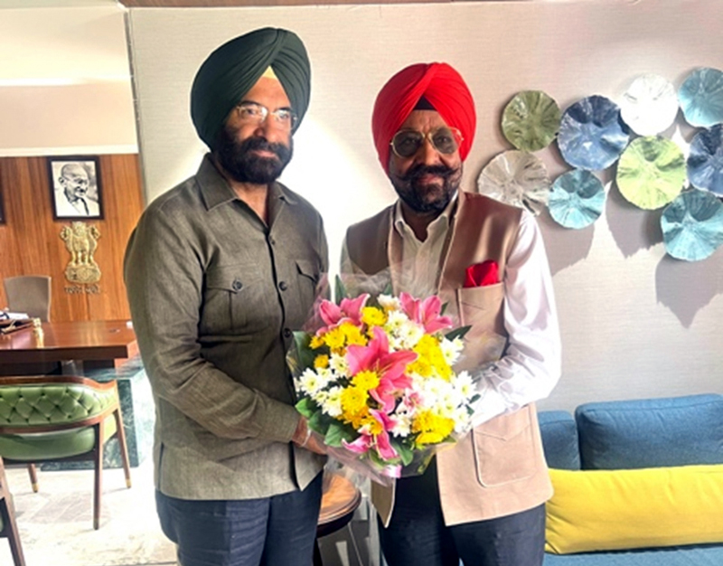 S S Sodhi during meeting with Minister Manjinder Singh Sirsa on Wednesday.