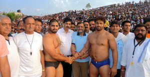 JAMMU, May 30: Haryana wrestler Som Bir defeated wrestler Abdul Gani of Mallerkotla, Punjab and clinched the title of 8th Annual Battal Ballian Dangal, organized by Pir Baba Dangal Committee Battal Ballian in collaboration with J&K Indian Style Wrestling Association at Battal, district Udhampur.