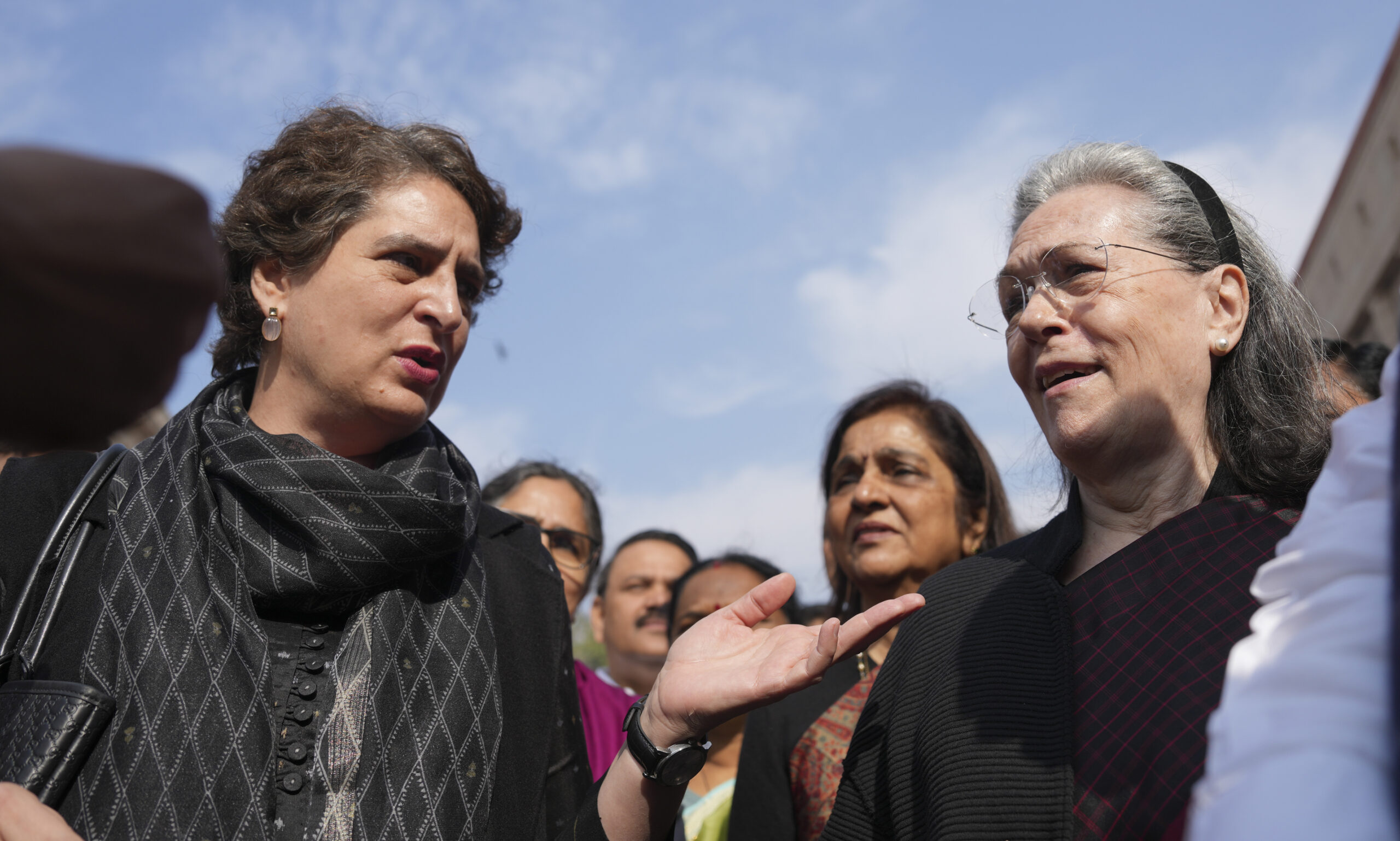 New Delhi, Dec 4: Leaders of various Opposition parties on Thursday staged a protest in Parliament complex over the issue of air pollution in the national capital, with Congress leader Sonia Gandhi asking the government to take action.