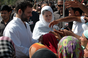 Sonia and Rahul were accompanied by senior party leaders including former Chief Minister and sitting MP, Ghulam Nabi Azad, and local MLA and Tourism Minister, G A Mir, visited a rehabilitation camp at the village and distributed relief material among the flood victims of the area.